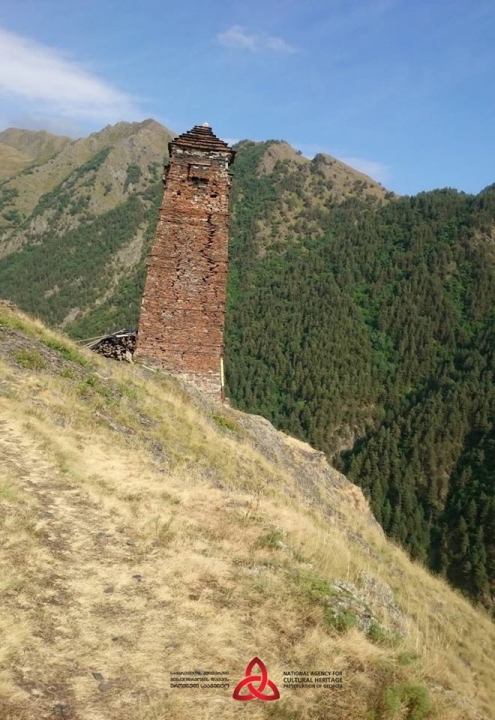 კოშკი დგას ნასოფლარის განაპირას, კლდეზე. განეკუთვნება გვიანდელ შუა საუკუნეებს. ხუთსართულიანია. ნაშენია ფიქლით. წყობა მშრალია. დაზიანებულია: ჩამოშლილია II, III და IV სართულების გადახურვა, მთელ სიაღლეზე დაბზარულია აღმოსავლეთ კედელი.