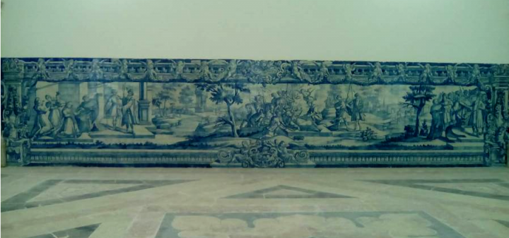 12 მეტრის სიგრძის და 3 მეტრის სიმაღლის 1080 ფილიანი ისტორიული პანო პორტუგალიური ხელოვნების ტრადიციული სტილით მოჭიქული თიხის ფილებზე ლურჯი საღებავითაა შესრულებული.