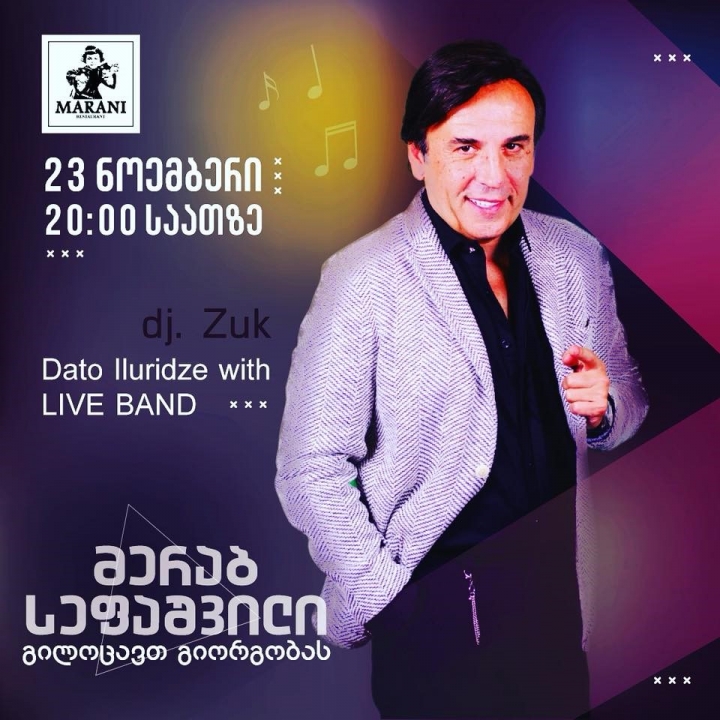 მერაბ სეფაშვილი, დათო ილურიძე ცოცხალ ბენდთან ერთად და დიჯეი ზუკ – გაიგეთ რას გთავაზობთ რესტორანი „მარანი“ გიორგობის საღამოს