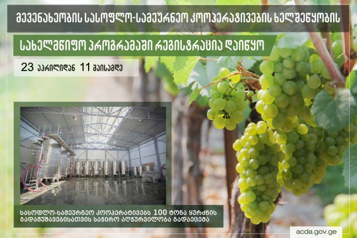 „მევენახეობის სასოფლო-სამეურნეო კოოპერატივების ხელშეწყობის სახელმწიფო პროგრამაში“ რეგისტრაცია დაიწყო.