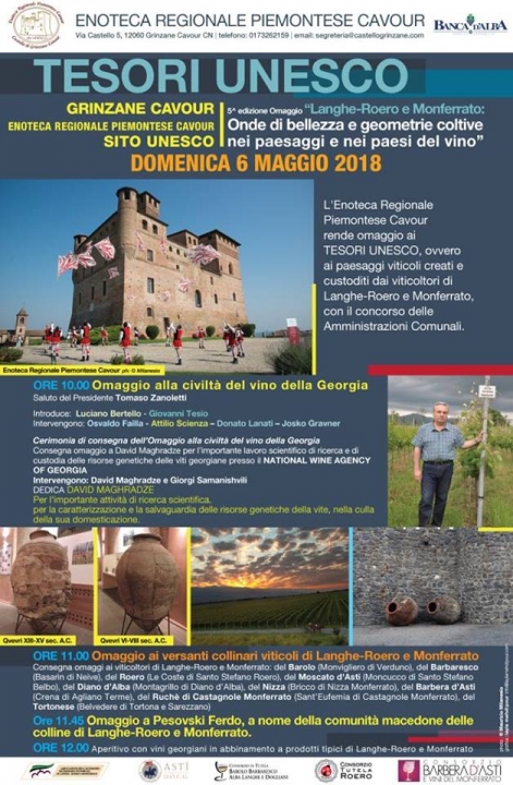 საქართველომ კიდევ ერთი აღიარება მოიპოვა. საპატიო სიგელი ამჯერადაც მეღვინეობისა და მევენახეობის სფეროში გვერგო. „მსოფლიოს ყველაზე მშვენიერი და მნიშვნელოვანი მევენახეობის ლანდშაფტების მქონე ქვეყნის“ სიგელი საქართველოს იტალიის მეღვინეობით ცნობილ პიემონტეს რეგიონში, ისტორიული ციხესიმაგრე Grinzane Cavoir-ში გამართულ ღონისძიებაზე გადაეცა.