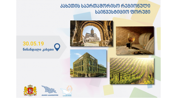 კახეთის საერთაშორისო საინვესტიციო რეგიონალური ფორუმი 2019 მიესალმება საერთაშორისო ინვესტორებს. ღონისძიება იქცევაპლატფორმად საჯარო და კერძო სექტორის წარმომადგენლებისთვის, რომლის მეშვეობითაც შესაძლებელი იქნება საინვესტიციო შესაძლებლობების და პარტნიორობის მოძიება რეგიონში.