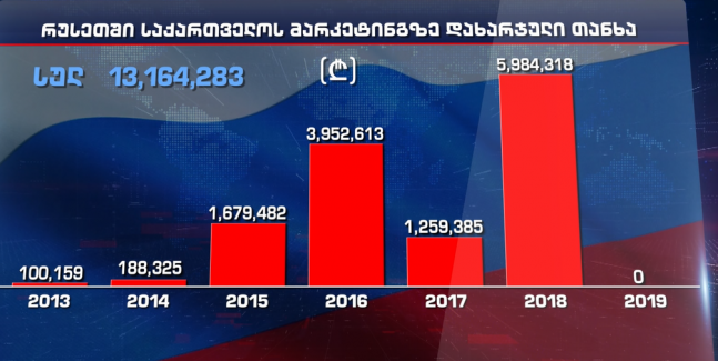 აღსანიშნავია, რომ 2019 წელს მარკეტინგის ბიუჯეტი 17 მლნ ლარითაა განსაზღვრული, საიდანაც 7 მლნ ლარი უკვე დახარჯულია, მაგრამ არცერთი ლარი – რუსეთში.