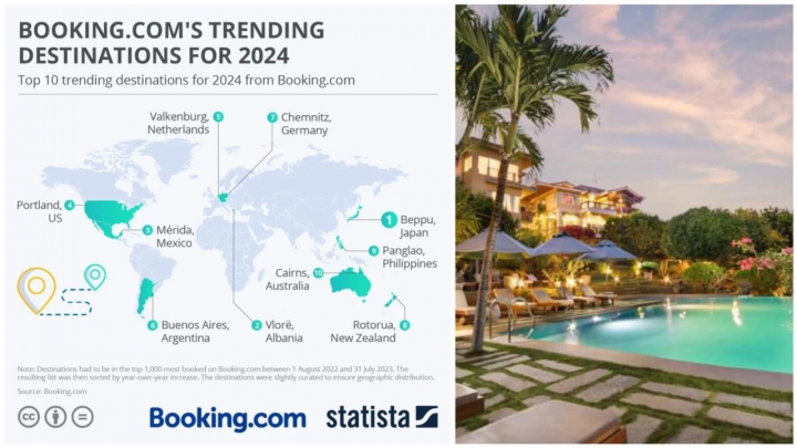 Booking.com-მა უკვე დაასახელა 2024 წლის ყველაზე პოპულარული ტურისტული მიმართულებები. მონაცემები პლატფორმაზე დაფიქსირებულ ჯავშნებს ეყრდნობა.