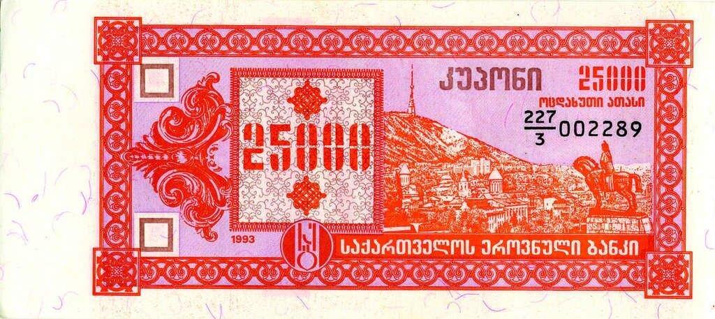 1993 წლის 25,000 კუპონი, ფასი – 25 ლარი;