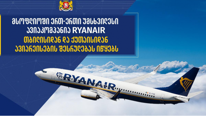 „რაინეარი“ თბილისისა და ქუთაისის საერთაშორისო აეროპორტებიდან იფრენს.