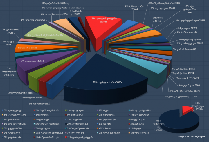 2018 წლის იანვარ-მარტის მაჩვენებლებით, რეგულარული და არარეგულარული რეისებით გადაყვანილი მგზავრთნაკადის მიხედვით, ბაზრის 89%-ი უცხოურ ავიაკომპანიებზე, ხოლო 11%-ი ეროვნულ ავიაგადამზიდავზე მოდის.