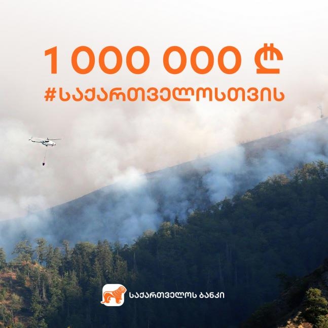 საქართველოს ბანკი 1 მილიონ ლარს გამოყოფს საქართველოს მასშტაბით სტიქიის შედეგად დამწვარი ტერიტორიის აღდგენისა და ხანძრის პრევენციისთვის.