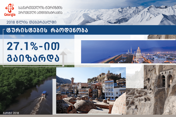 იმ უცხოელი მოგზაურების ანუ ტურისტების რიცხვმა, რომლებმაც 24 საათი და მეტი დაჰყვეს საქართველოში 177 845-ს მიაღწია, რაც 37 927-ით აღამეტება 2017 წლის თებერვლის მაჩვენებელზე (+27.1%).