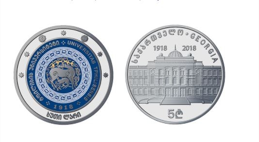 ეროვნულმა ბანკმა ივ.ჯავახიშვილის სახელობის თბილისის სახელმწიფო უნივერსიტეტის 100 წლის საიუბილეო თარიღის აღსანიშნავად 5 ლარის ნომინალის ვერცხლის საკოლექციო მონეტა გამოუშვა. დღეს ეროვნული ბანკის პრეზიდენტმა, კობა გვენეტაძემ, უნივერსიტეტის რექტორ გიორგი შარვაშიძესთან და მონეტის დიზაინერ ნინო გონგაძესთან ერთად საზოგადოებას მონეტა წარუდგინა.