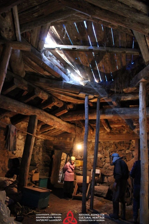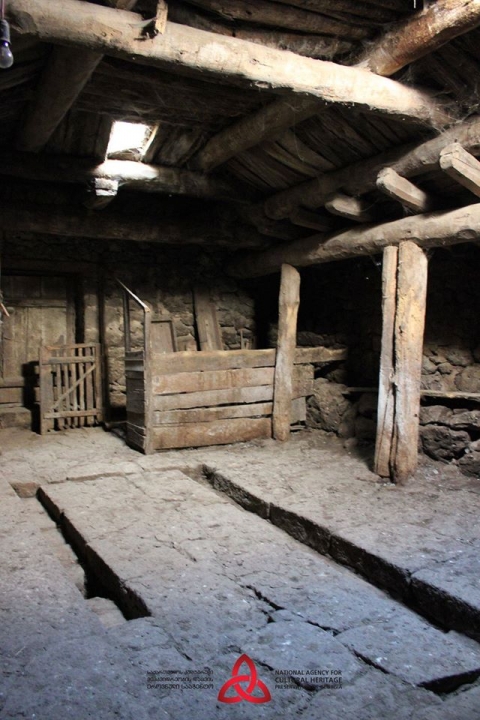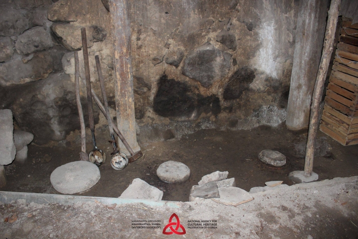 ახორის მარჯვნივ პატარა საბძელია გამართული. ახორიდან დარბაზშია გასასვლელი. დარბაზი რამდენიმე ნაწილადაა გაყოფილი, მარცხენა მხარეს კედელთან ქვევრებია ჩაყრილი. დარბაზის ცენტრალურ ნაწილს რვაკუთხოვანი გვირგვინოვანი გადახურვა აქვს, რომელიც ამდენივე სვეტს ეყრდნობა.