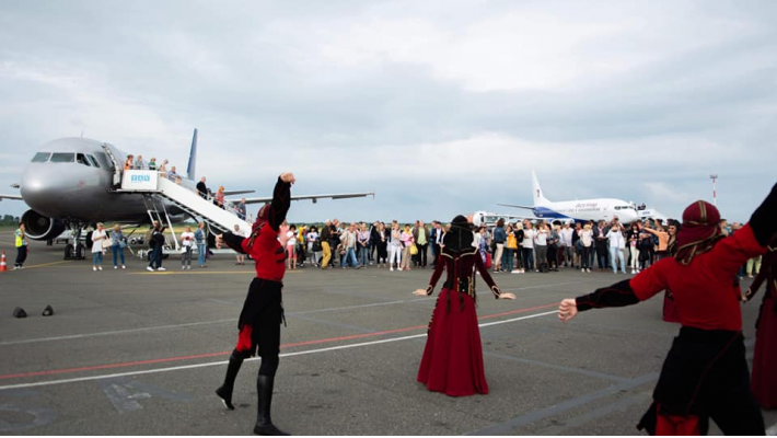 მგზავრებისთვის აეროპორტში ფოლკლორული შოუ და ქართული ღვინის დეგუსტაცია გაიმართა.