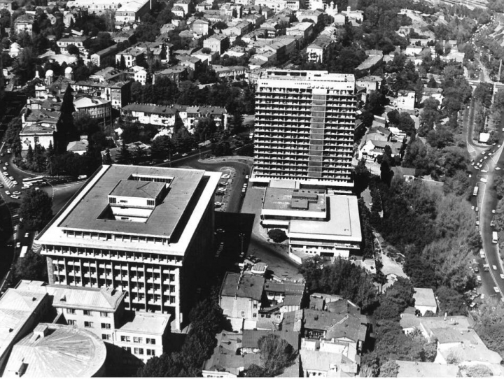 1978 წელს სასტუმროს მიმდებარედ აშენდა ცენტრალური ტელეგრაფის ახალი შენობა ღია ოქროსფერი კედლებით, რომელიც ამ ადგილას მდგარი ძველი შენობების მაგიერ აიგო. აქ იდგა ყოფილი საფოსტო სადგური, რომელიც შ. რუსთაველის სახელობის სახელმწიფო პრემიის ლაურეატის ვლადიმერ ალექსი-მესხიშვილისა და თეიმურაზ მიქაშვავიზის პროექტის მიხედვით იყო აშენებული.