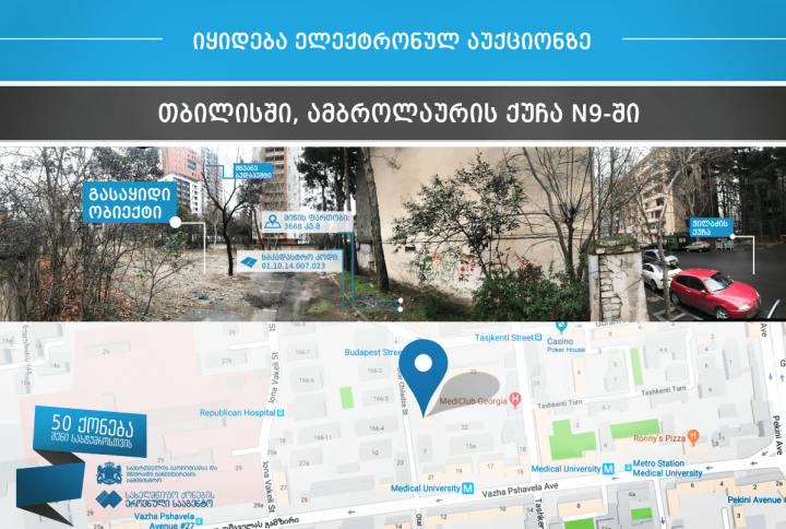 სასტუმროს ასაშენებლად ქონების ეროვნულმა სააგენტომ აუქციონზე გასაყიდად გამოიტანა 3668 კვ.მ. მიწის ნაკვეთი, სასტუმრო პროექტ „50 ქონება შენი სასტუმროსთვის“ ფარგლებში აშენდება.
