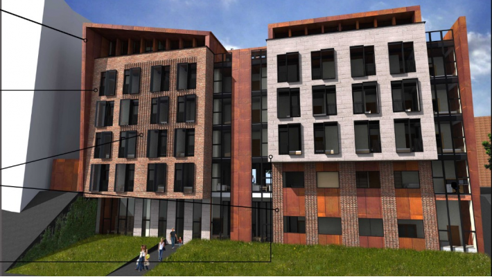 სასტუმრო შენობის მოპირკეთება გადაწყვეტილია შემდეგი მოსაპირკეთებელი მასალებით – აგური, ტრავერტინის ქვა, სპილენძის ფურცლები. გადახურვა შესრულდება სპილენძის ფურცლებით