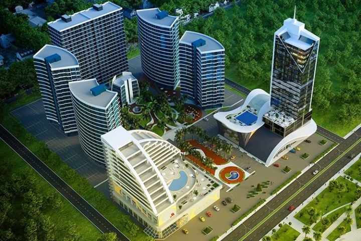 სასტუმრო-საცხოვრებელი კომპლექსი შედგება ორი 16-სართულიანი და ორი 18-სართულიანი შენობებისაგან.