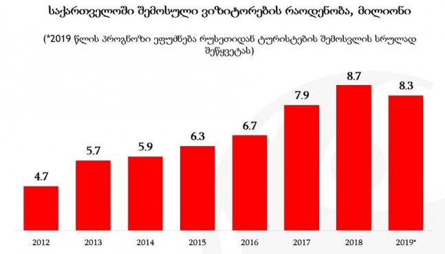 ორგანიზაციის ცნობით, თუ დავუშვებთ ყველაზე რადიკალურ სცენარს, რომ ივლისიდან საქართველოში რუსი ვიზიტორი საერთოდ აღარ შემოვა, 2019 წელს ვიზიტორების რაოდენობა დააახლოებით 8.3 მილიონი იქნება, რაც 2017 წლის მაჩვენებელზე მეტია.