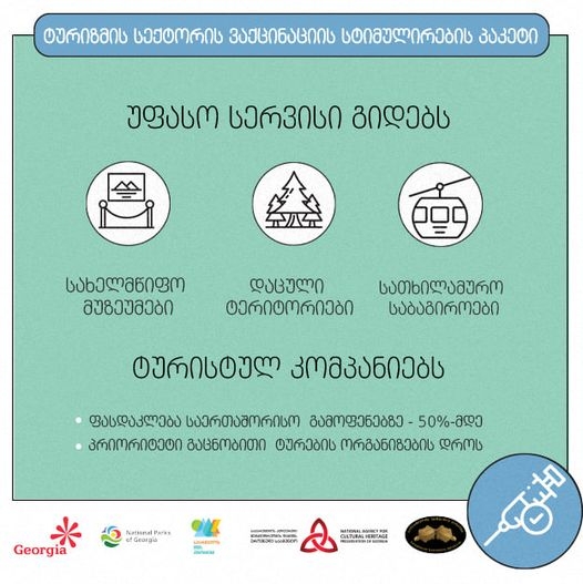 ყველა სრულად ვაქცინირებული გიდის უსასყიდლო წვდომა სახელმწიფო სერვისებზე – მუზეუმებში, დაცულ ტერიტორიებზე და საბაგირეობზე შესვლა იქნება უფასო.