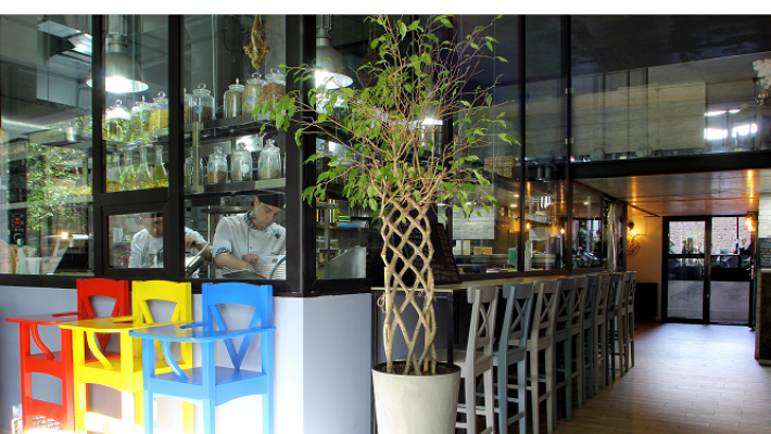 ასევე აღსანიშნავია დარბაზის შუაგულში მდებარე გამჭვირვალე სამზარეულო. თითოეულ სტუმარს შეუძლია, მომზადების პროცესს, პროდუქტის დამუშავებიდან კერძის დასრულებამდე, ადევნოს თვალი.