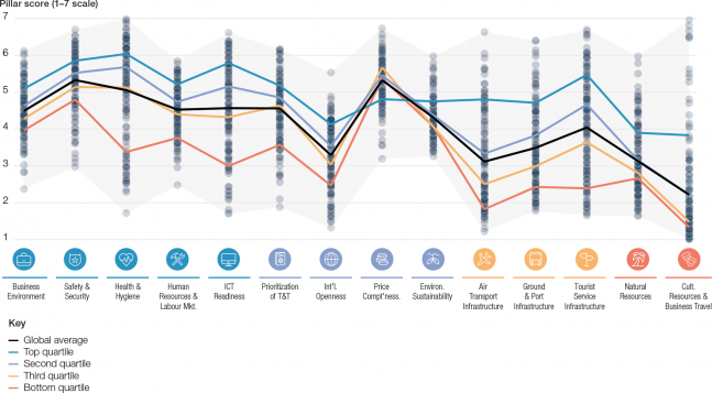 საქართველომ დიდი პროცენტით გააუმჯობესა ტურისტული მომსახურების ინფრასტრუქტურა. ამის შესახებ იმ დასკვნაშია საუბარი, რომელიც მსოფლიო ეკონომიკურმა ფორუმმა (WEF) გამოაქვეყნა. ანგარიში „მოგზაურობა და ტურიზმი: კონკურენტუნარიანობა 2019“ სამხრეთ აფრიკის ტურისტულ მეტროპოლ კეიპტაუნში წარადგინეს.მსოფლიო ეკონომიკური ფორუმი (WEF) ანგარიშს ყოველ ორ წელიწადში ერთხელ ამზადებს. რეიტინგში სხვადასხვა ქვეყანაში ტურიზმის განვითარების ტემპებია შეფასებული.