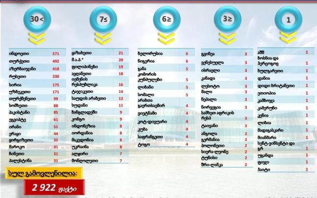 სავიზო რეჟიმის დარღვევის ფაქტები კი ყველაზე ხშირად ირანელების შემთხვევაში ფიქსირდება (244), ასევე ჩინეთისა (197) და რუსეთის (174).