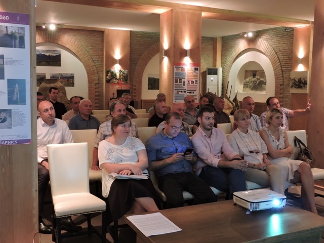 ღვინის ეროვნული სააგენტოს ხელმძღვანელობამ შეხვედრის მონაწილეებს რთველის დროს ყურძნის ჩაბარების პროცესში საკადასტრო მონაცემების გამოყენების პირობები გააცნო. სააგენტოს ვენახების კადასტრის ჯგუფმა სტუმრებს წარუდგინა ვენახების კადასტრის აგების პრინციპები, მისი რეალიზაციის გზები, აქამდე შესრულებული სამუშაოები რაჭა-ლეჩხუმსა და კახეთში, ასევე მიმდინარე სამუშაოები გურჯაანის მუნიციპალიტეტში.