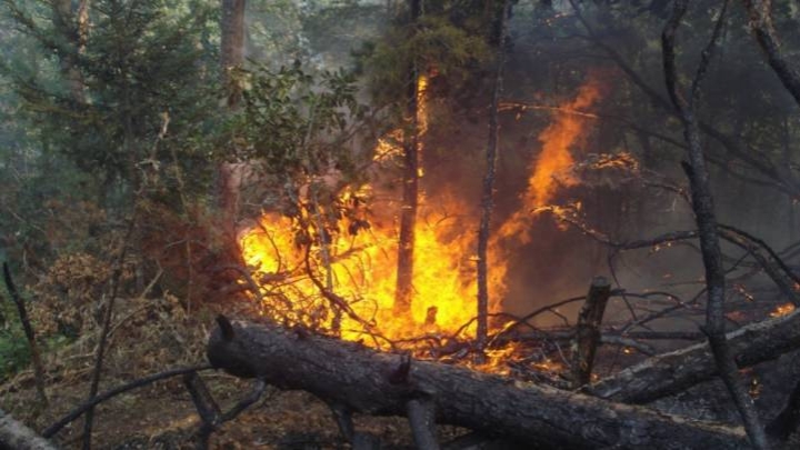 ლენტეხის მუნიციპალიტეტის სოფელ ზესხოში ცეცხლი უკიდია ტყის საფარს.