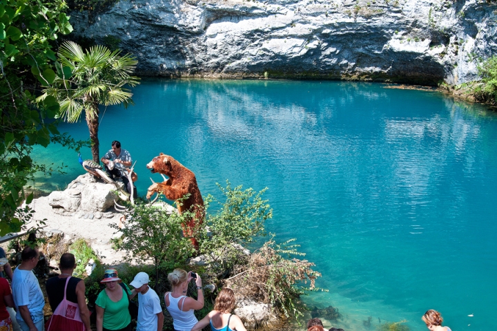 მოკლე აღწერა: ცისფერი ტბა — კარსტული ტბა საქართველოს ჩრდილოეთ-დასავლეთ ნაწილში, აფხაზეთში (გაგრის მუნიციპალიტეტი). გაწოლილია მდინარე ბზიფის შუა დინების მარჯვენა ნაპირზე, 109,5 მ სიმაღლეზე. სარკის ფართობი — 0,0012 კმ², უდიდესი სიღრმე 23 მ, საშუალო სიღრმე 15 მ, წყლის მოცულობა 18000 მ³. ტბის ფსკერზე ამოდის მძლავრი ვოკლუზი. ტბიდან გადის ნაკადი. წყალი სუფთაა და გამჭვირვალე. ზაფხულში წყლის ტემპერატურაა 8,5°.
