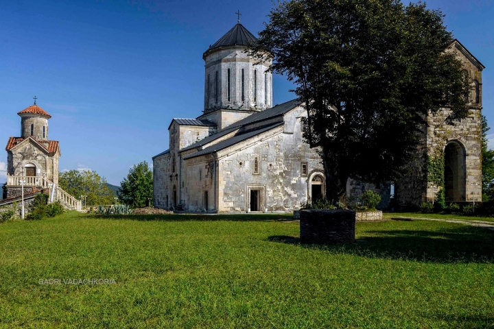 მთავარი ტაძარი მოპირკეთებულია ეკლარის თლილი ქვით, მდიდარია ფრესკული მხატვრობით. საკურთხევლის კონქში დაცულია გელათის მოზაიკა (ღვთისმშობელი ყრმით, მიქაელ და გაბრიელ მთავარანგელოზები), დასავლეთ სტოაში _ XII ს-ის ფრესკა საეკლესიო კრების გამოსახულებით; სამხრეთ ეკვდერში საქართველოს მეფის დავით VI ნარინის (1246-1293) 2 პორტრეტია (სამეფო სამოსითა და ბერული ჩოხით); ჩრდილოეთ კედელზე გამოსახული არიან იმერეთის სამეფო ოჯახის წევრები (XVI ს.), იქვეა დავით IV აღმაშენებლის (1089-1125) პორტრეტი, რესტავრირებული XVI ს-ში.