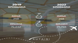 2022 წლის ნოემბერში, 2019 წლის ანალოგიურ პერიოდთან შედარებით ქუთაისის საერთაშორისო აეროპორტში...