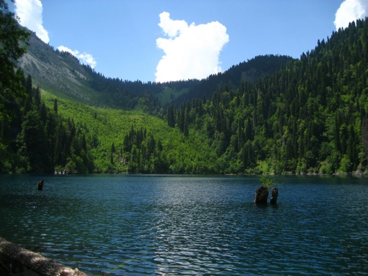 მოკლე აღწერა: პატარა რიწა — ტბა გაგრის ქედის აღმოსავლეთ კალთაზე. ზღვის დონიდან 1235 მ. სარკის ფართობი 0,1 კმ², წყლის მოცულობა 3,25 მლნ. მ³, მაქსიმალური სიღრმე 76 მ, წყალშემკრები აუზის ფართობი 2,95 კმ². ქვაბული გაჩენილია მთა ფშეგიშხის აღმოსავლეთ კალთის ჩამოქცევის შედეგად. საზრდოობს თოვლის, წვიმის, მიწისქვეშა წყლით. გამდინარეა მიწისქვეშა გზით. დონე მაღალია მაისში, დაბალი — მარტში. ზაფხულში წყლის ტემპერატურა ზედაპირზე 18-20°C. მცირე ხნით იფარება ყინულით. ტბის წყალი მუქი ლურჯია. ტბაში არის კალმახი.