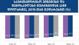 მიმდინარე წლის აპრილში 2020 წლის აპრილთან შედარებით ტურისტულ სექტორში აქტივობა 152 პროცენტით...