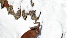აღმოსავლეთ კავკასიის ჯიხვი (Capra cylindrocornis), გაწელილი სპირალის მსგავსი, უკან მიმართული და...