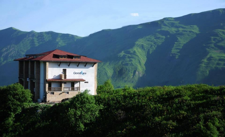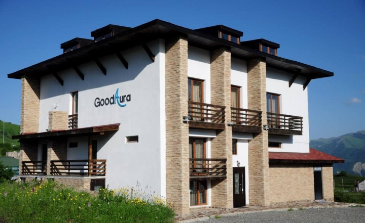 Гостиница GoodAura находится в центре лыжного курорта Гудаури (от первой канатной