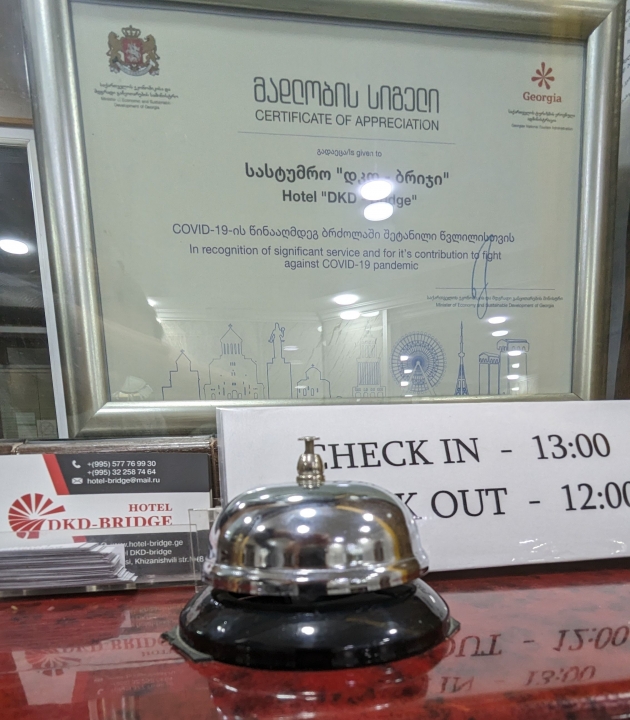 3-х звездочный отель “ДКД-БРИДЖ”,является отелем современного типа,который отличаутся Своей оригинальностью и находится в 15 минутах от центра и в 30 минутах от аеропорта,в одном из известном районе г. Тбилиси. Отель расположен на 3-х этажах,имеется уютный дворик,где вы можете присесть и выпить чашку чая или кофе, или просто отдохнуть. Отель “ДКД-БРИДЖ”предоставляет Вам 38 современных,комфортных номеров,с полной комплектацией.Комнаты расположенны на первом,втором и третьем этажах,на верхнем этаже у каждого номера есть балкон.В отеле функционирует бар,где Вы можете попробовать как традиционные,так и международные блюда. Отель “ДКД-БРИДЖ” известен своим специализированным боксерским спортивным комплексом который является одним из сильнейших,в маштабах Грузии. В отеле функционирует Конференц зал,оборудованный новейшей техникой,что дает Вам возможность провести конференции,разные встречи,устроить презентации и другие мероприятия. В отеле “ДКД-БРИДЖ”есть салон красоты и сауна. “ДКД-БРИДЖ” расчитан на любой тип гостей.У отеля есть возможность принять гостей находящихся в нашей стране как с деловым визитом,так и спортивные группы и любящи отдых туристов и предложить приемлемый для них полный пакет услуг. В масштабах Грузии отель “ДКД-БРИДЖ”изместен низкими ценами,наряду с этим дружный персонал предоставит вам возможность для комфортного отдыха с высокм уровнем обслуживания.