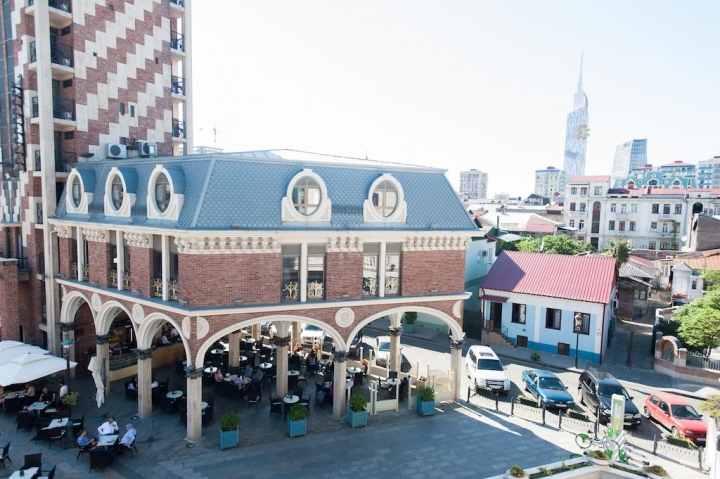 Гостиница Piazza FOUR COLOURS расположена рядом с Часовой башней на центральном сквере района старого Батуми, в 10 минутах ходьбы от морского побережья. Приемная гостиницы работает в 24 часовом режиме, активная зона Wi-Fi и комнаты снабжены кондиционерами и ультратонкими телевизорами. Интерьер каждой комнаты гостиницы Piazza four colours уникален, каждая комната разрешена в разных цветах. Здесь же, при гостинице находится грузинский ресторан «Мимино», европейский ресторан Marco Polo, кафе La Brioche и ирландский паб Quiet Woman. Вы сможете насладится живой музыкой, звуки которой каждый вечер слышны на сквере. Чтобы пешком дойти до батумского центрального бульвара, Вам понадобится всего 7 минут. Гостиница Piazza four colour дает Вам возможность жить рядом с такими достопримечательностями города Батуми как памятник Медее, парк 6 мая, с его дельфинарием и от этих мест вас отдаляет 15 минутная пешая прогулка. Батумский аэропорт находится в 6 км от гостиницы, а Кутаисский аэропорт в 120 км. В случае вашего желания возможно обеспечение транспортом до обоих аэропортов.