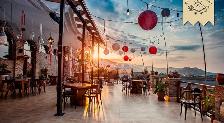 ресторан с открытым баром и верандой с видом на озеро «Илья»;