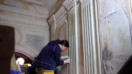 В подъезде исторического дома в Старом Тбилиси, во время реставрации обнаружили настенную роспись,...