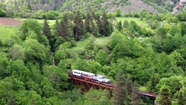 Движение по узкоколейной железнодорожной линии между горными курортами Боржоми и...