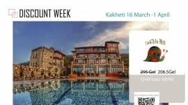 В Кахетии с 16 марта до 1 апреля пройдет «Discount Week» (неделя скидок): 11 гостиниц, около десяти шато,...