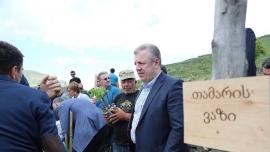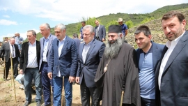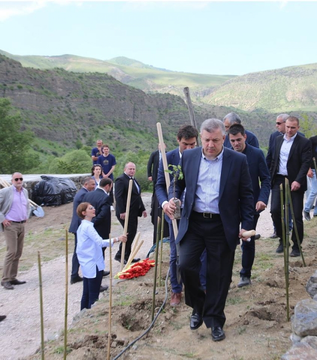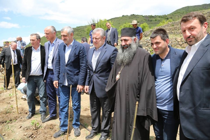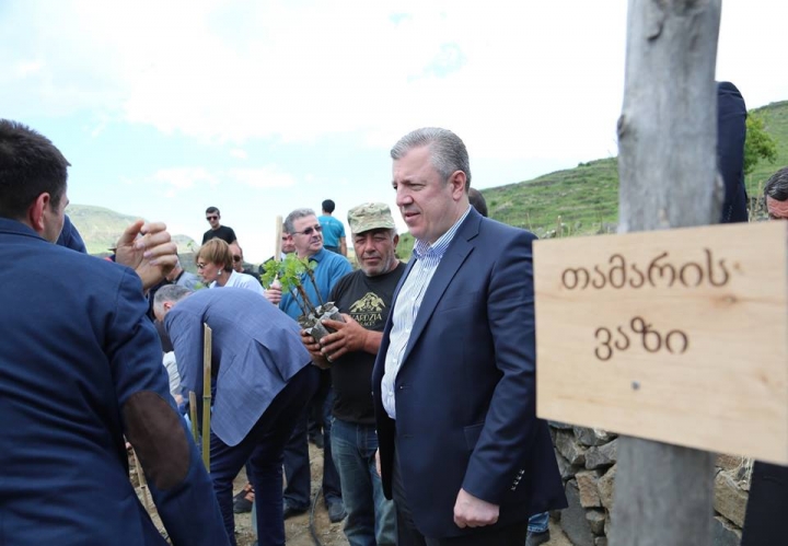 Сегодня глава правительства Грузии Георгий Квирикашвили посетил регион Самцхе-Джавахети и принял участие в посадке старинных сортов месхетинского винограда в Аспиндза, на территории так называемых "Месхетинских террас Хизабаври".