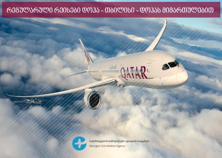 В частности, с 15 февраля Qatar Airways будет летать по маршруту Доха-Тбилиси-Доха ежедневно. Соответствующее разрешение агентство выдало авиакомпании еще 3 февраля 2021 года.