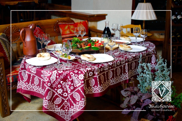 В стилизованном доме Месхов гости могут насладиться блюдами Месхетинцев и познакомится с правилами приготовления. Када, Хачапури, Месхетинские Биши, Тушеные Хинкали, Татар Берика и местные закуски из зелени – выбор довольно большой. Вместе со все этим, в меню, представлены блюда, как европейской кухни, так и блюда характерные для разных регионов Грузии.