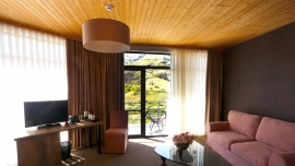‘’Вардзиа Резорт‘’, из которого открывается вид на монастырский комплекс Вардзиа, кроме обычных номеров предлагает коттеджи на территории гостиницы. В этом случае гости могут пользоваться всеми сервисами гостиницы, хотя цены на коттедж значительно ниже.