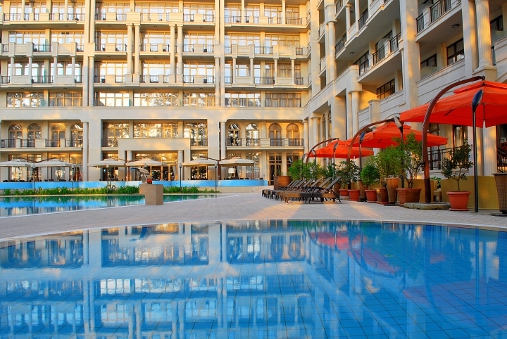 5. Территория гостиницы площадью 41 760 кв. м., где большую часть занимают многовековые деревья, бамбуковые аллеи и сады – это место для множества развлечений, среди которых: открытый бассейн с соленой водой в саду, теннисные корты, баскетбольные площадки, мини поле для гольфа, детская площадка, велосипеды, настольный теннис, крытый бассейн, тренажерный зал и сауна. Отдельно мы хотим отметить йогу, которую вам проведет индийский специалист, непосредственно передающий вам традиционный стиль и специфику. На берегу Черного моря, под восходящим солнцем, проведенный традиционный урок йоги – это приятное и здоровое начало дня.