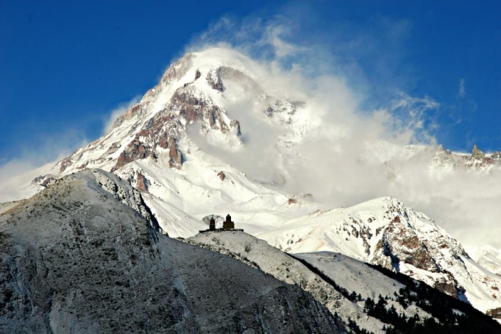 Казбек или по-грузински Мкинварцвери («Ледяной пик») – одна из высочайших вершин Кавказа, высота – 5034 метра над уровнем моря. На склоне горы со стороны Дарьяльского ущелья на высоте 3675 расположено здание неработающей в настоящее время метеостанции, которое используется как приют для альпинистов.