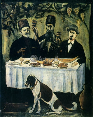 Работы художника ярко и правдоподобно отражают городскую жизнь грузин того времени, и именно за это мы так любим его работы. Веселящиеся люди с рогами в руках, ремесленники, торговцы, священники, огромные кувшины, наполненные вином, уставленные яствами столы.