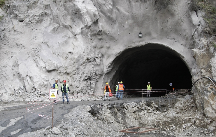 Строительство тоннеля на Военно-Грузинской дороге, между Дарьяльским и Девдоракским ущельями (близ грузино-российской границы), ведется в активном режиме.