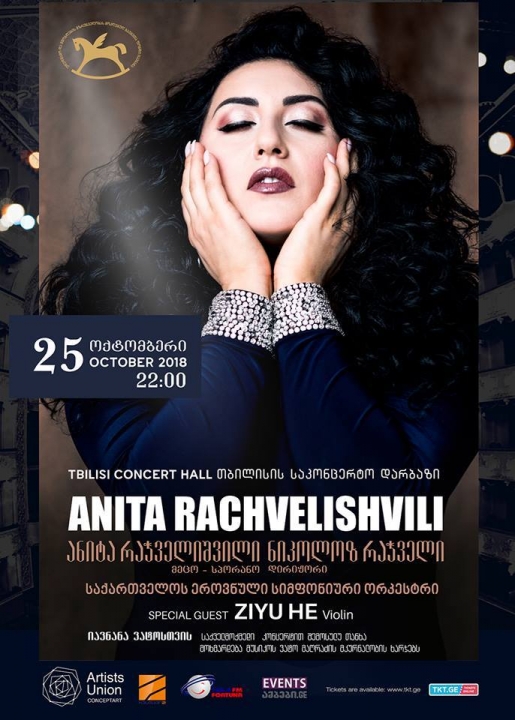 Анита Рачвелишвили выступит в сопровождении Национального симфонического оркестра Грузии имени Евгения Микеладзе под управлением дирижера, пианиста и композитора Николоза Рачвели.