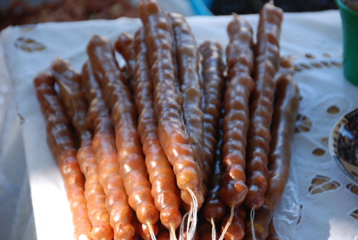 Позже американский журналист узнал, что чурчхелу делают из грецких орехов, нанизанных на нить, и густого виноградного сока.